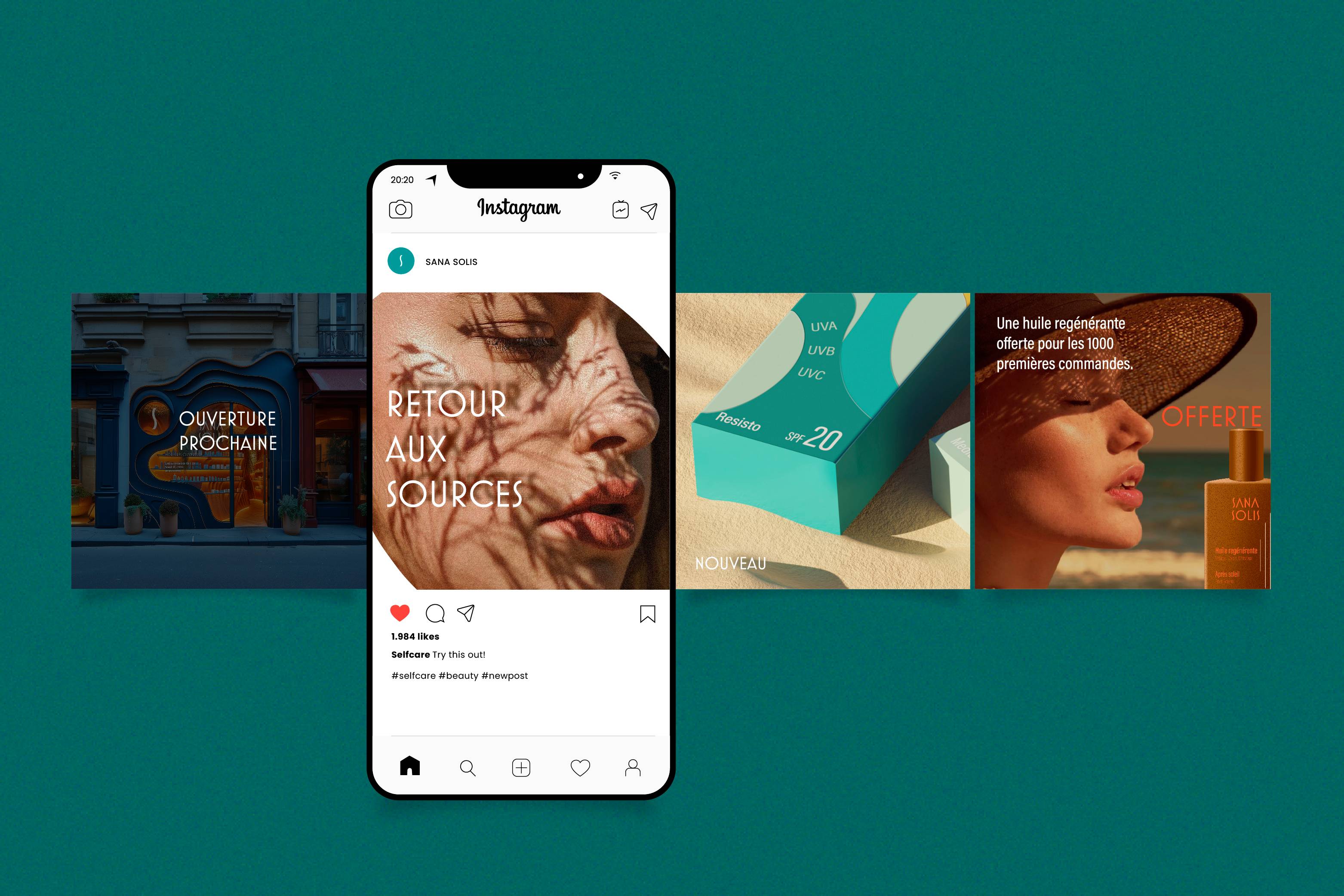La campagne « Rituel du soleil » illustre poétiquement les packs pour les réseaux sociaux et l’affichage.